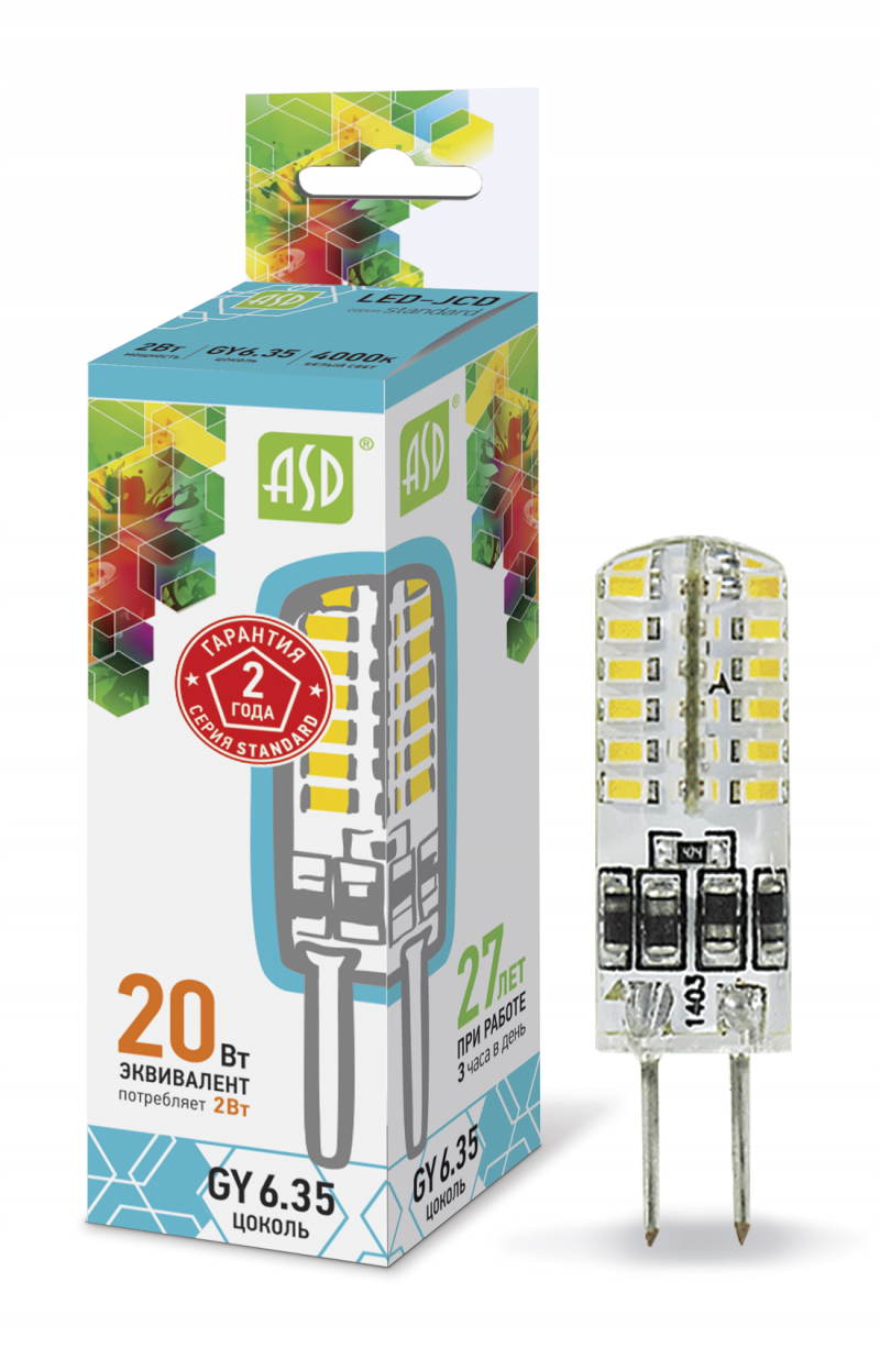 ASD лампа светодиодная 2W GY6,35 4000К холодная