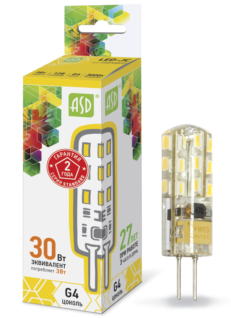 ASD лампа светодиодная 3W 12V G4 3000К теплая