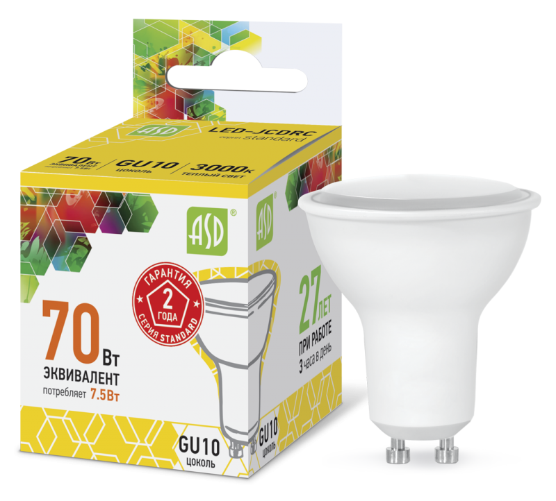 ASD лампа светодиодная GU10 7.5W 3000К теплая