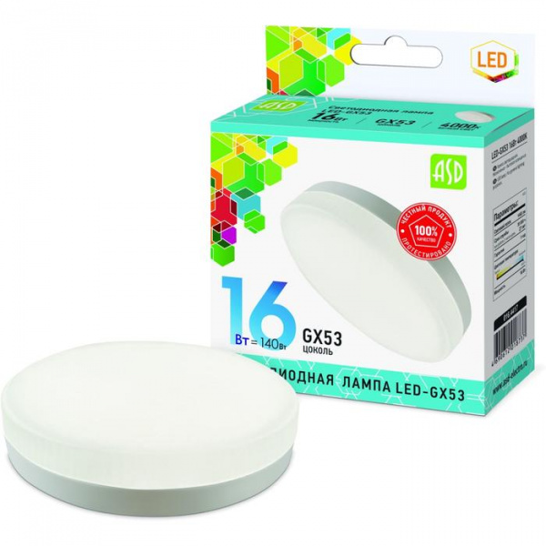 ASD лампа светодиодная GX53 16W 230V 3000К теплая