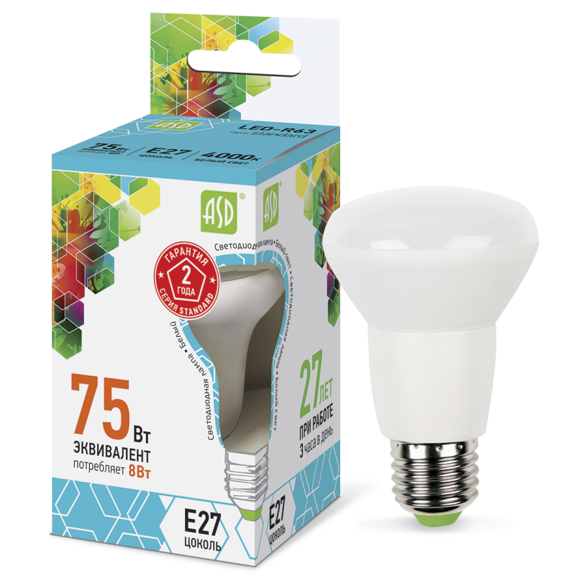 ASD лампа светодиодная R63 5W Е27 4000К холодная