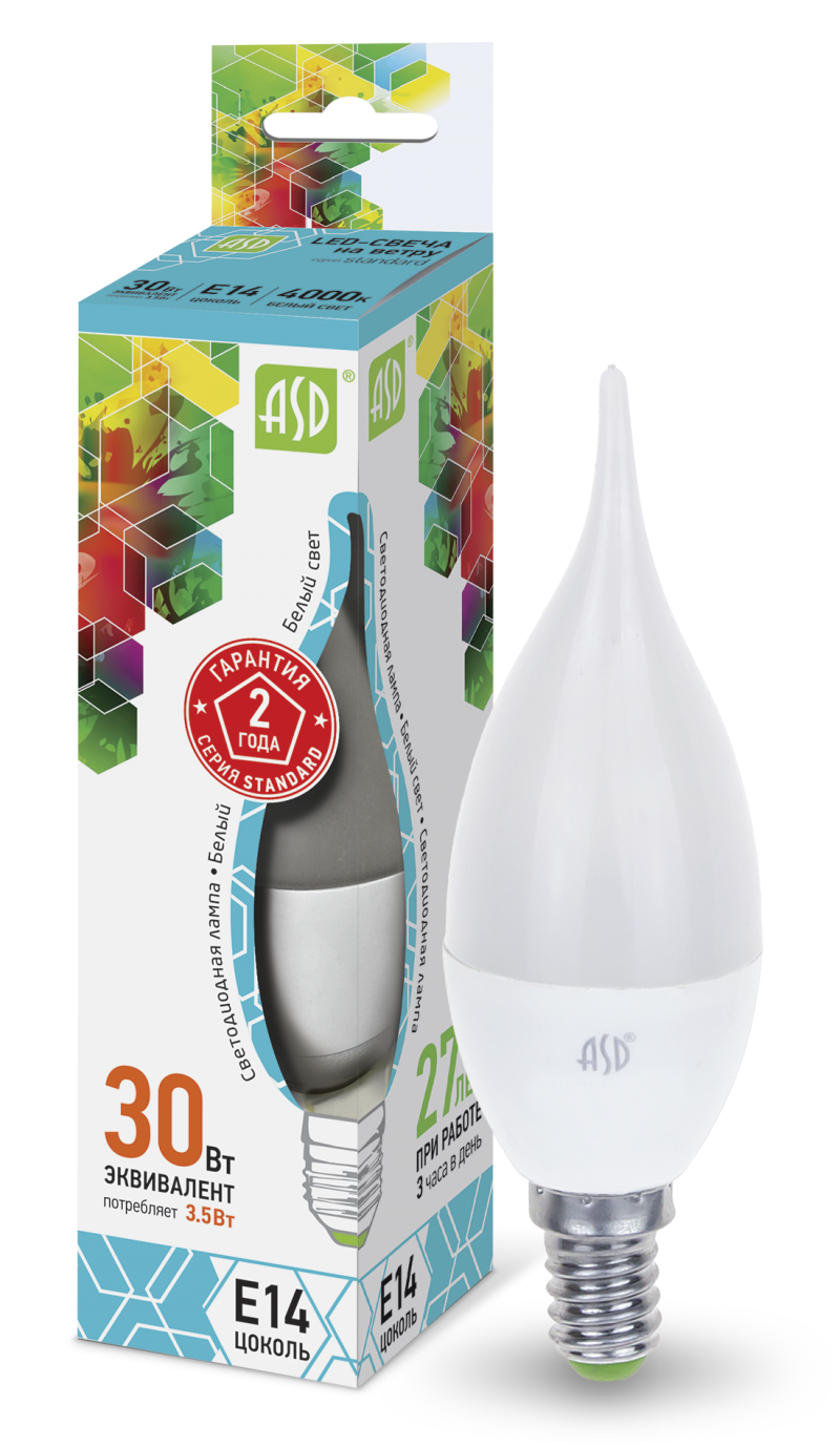 ASD лампа светодиодная СВЕЧА НА ВЕТРУ 3.5W Е14 4000К холодная