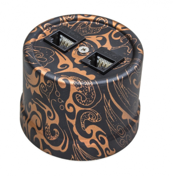 BIRONI Розетка RJ45 компьютерная двойная, пластик, цвет Античная Медь