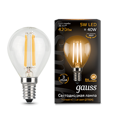 Gauss лампа светодиодная филамент шарик E14 5W 2700K