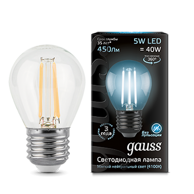 Gauss лампа светодиодная филамент шарик E27 5W 4100K