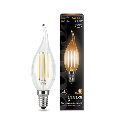 Gauss лампа светодиодная филамент свеча на ветру E14 5W 2700K