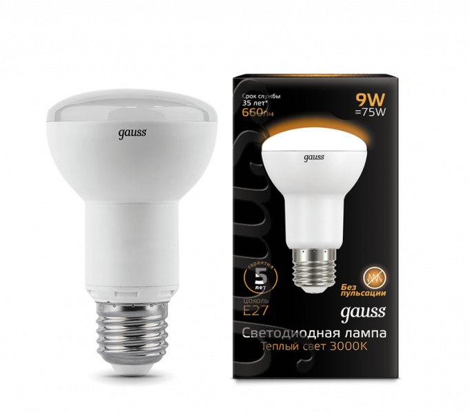 Gauss лампа светодиодная R63 E27 9W 2700K