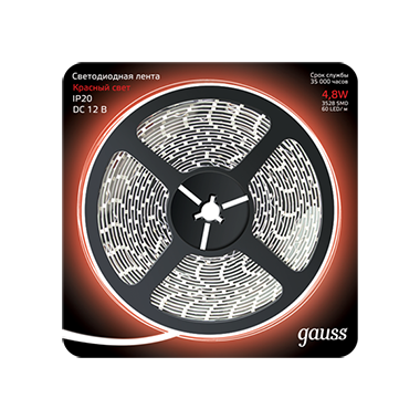 Gauss Лента LED 2835/60-SMD 4.8W 12V DC красный (блистер 5м)