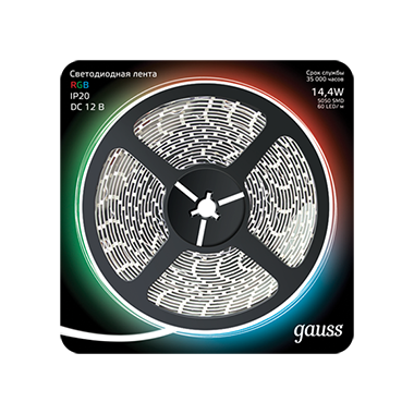 Gauss Лента LED 5050/60-SMD 14.4W 12V DC RGB (блистер 5м)