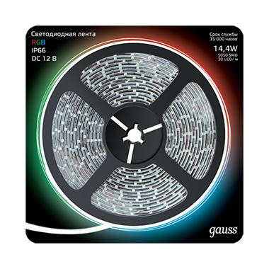 Gauss Лента LED 5050/60-SMD 14.4W 12V DC RGB IP66 (блистер 5м)
