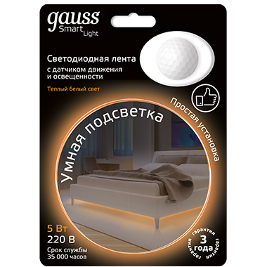 Gauss Умная подсветка 5W 2700К 1.2m sensor