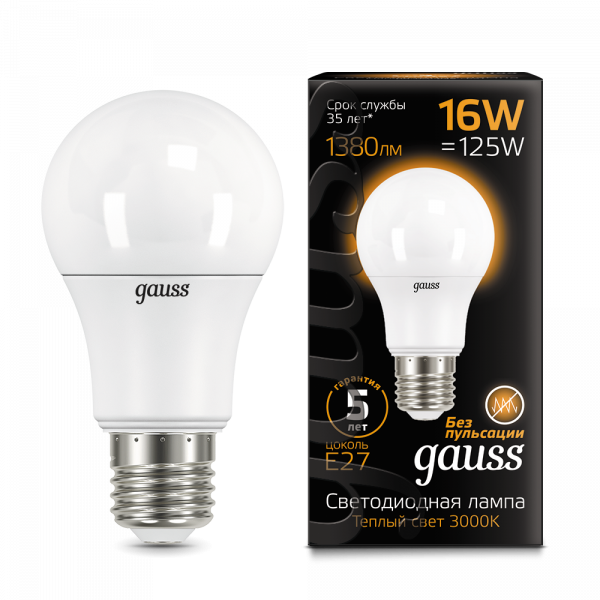 Лампа Gauss LED A60 16W E27 1380lm 3000K