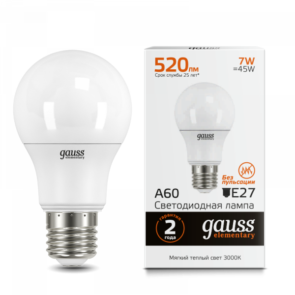 Лампа Gauss LED Elementary A60 7W E27 2700K