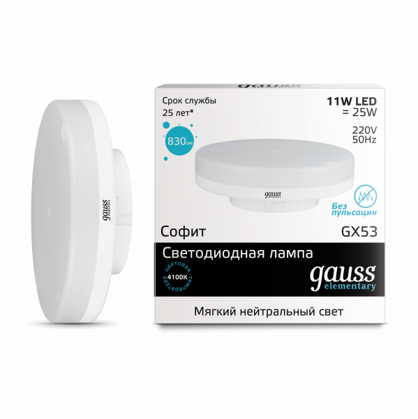 Лампа Gauss LED Elementary GX53 11W 4100K