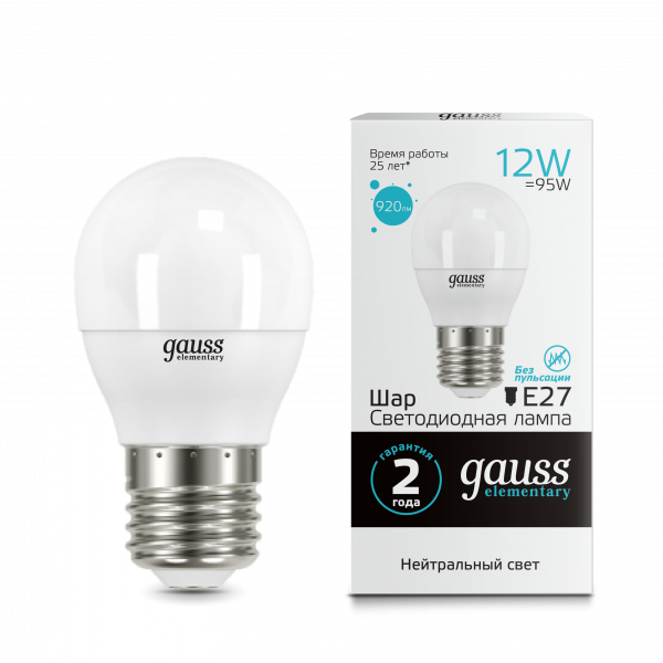 Лампа Gauss LED Elementary Шар 12W 920lm E27 4100K