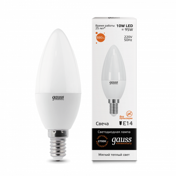 Лампа Gauss LED Elementary свеча 10W E14 2700K