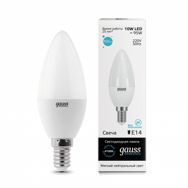 Лампа Gauss LED Elementary свеча 10W E14 4100K