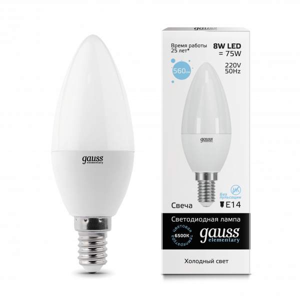 Лампа Gauss LED Elementary Свеча 8W E14 560lm 6500K