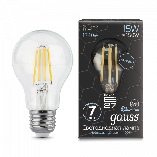 Лампа Gauss LED Filament Graphene A60 E27 15W 1740lm 4100К