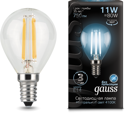Лампа Gauss LED Filament Шар E14 11W 750lm 4100K
