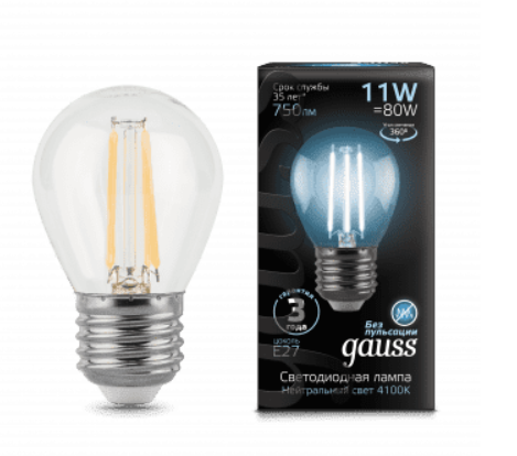 Лампа Gauss LED Filament Шар E27 11W 750lm 4100K
