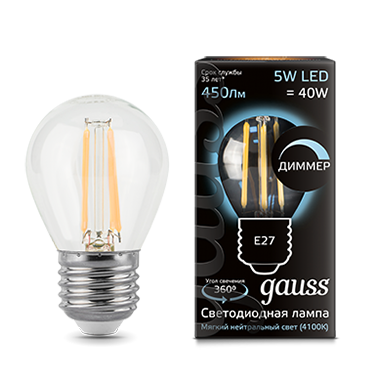Лампа Gauss LED Filament шарик диммируемый E27 5W 4100K