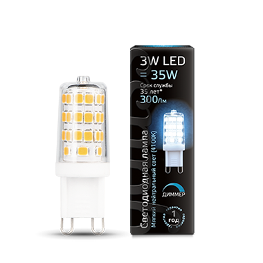 Лампа Gauss LED G9 AC185-265V 3W 300lm 4100K диммируемая