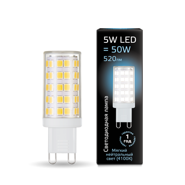 Лампа Gauss LED G9 AC185-265V 5W 520lm 4100K керамика