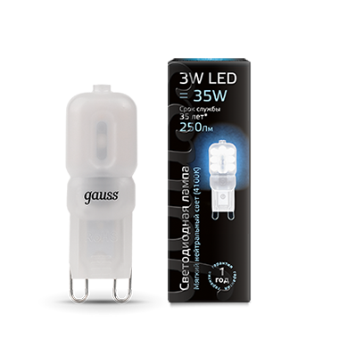 Лампа Gauss LED G9 AC220-240V 3W 250lm 4100K пластик