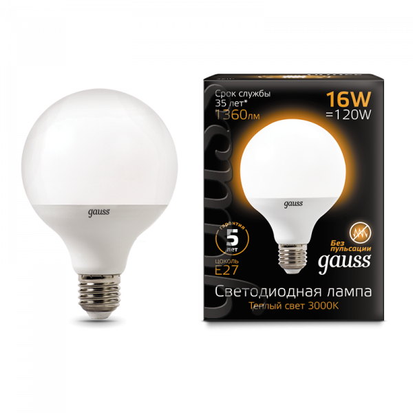 Лампа Gauss LED G95 E27 16W 1360lm 3000K