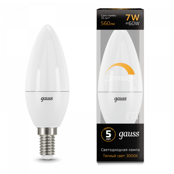 Лампа Gauss LED свеча диммируемая E14 7W 3000К