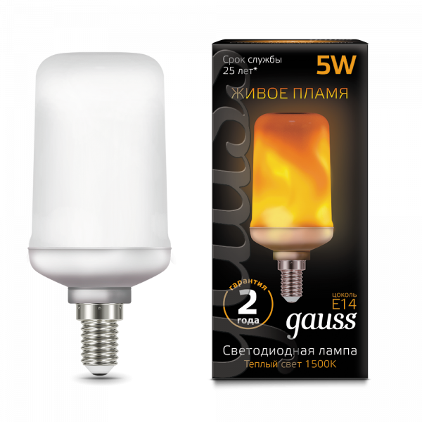 Лампа Gauss LED T65 Flame 5W E14 20-80lm 1500K