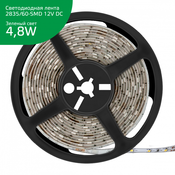 Лента Gauss LED Elementary 2835/60-SMD 4.8W 12V DC зеленый IP66 (ZIP Bag 5м)