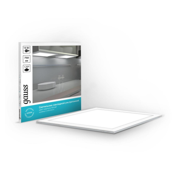Светильник светодиодный Gauss IP20 300*300*8мм 10W 750lm 4200K ультратон.панель с мат.рассеив.