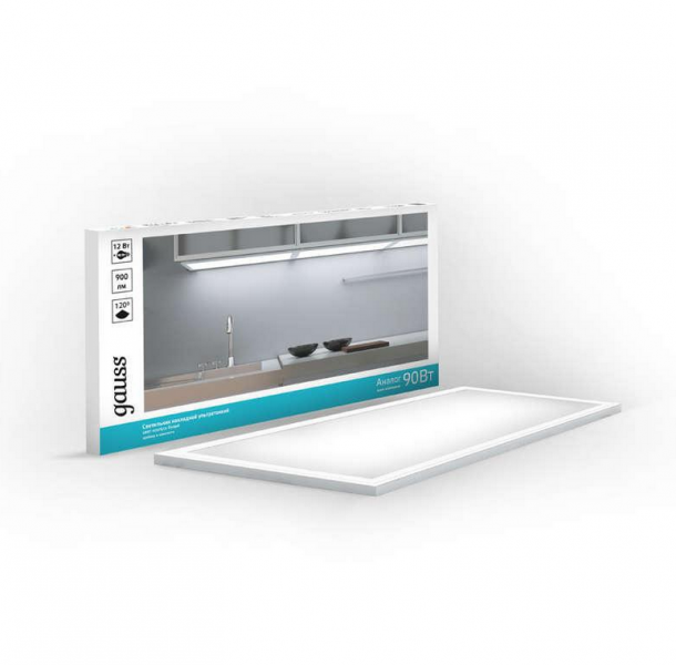 Светильник светодиодный Gauss IP20 300*600*8мм 12W 900lm 4200K ультратон.панель с мат.рассеив.