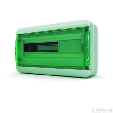 Tekfor бокс навесной 18 мод. IP65, прозрачная зеленая дверца