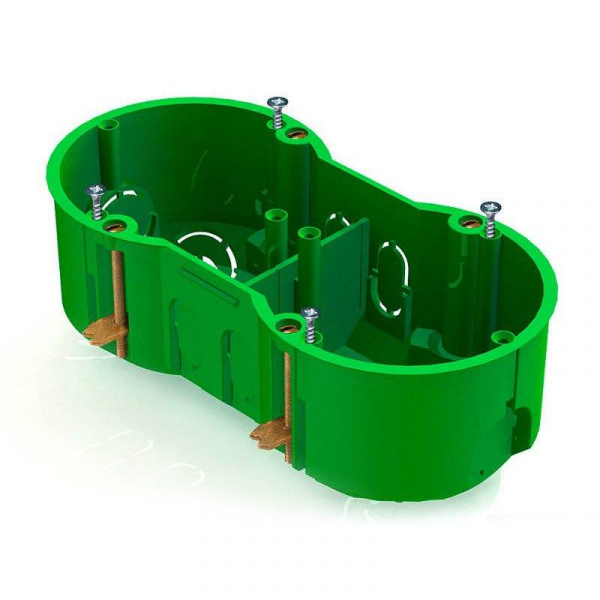 GREENEL Коробка установочная 2-местная 141х70х45мм. для скрытого монтажа в полых стенах (с саморезами, с металлическими зажимами)