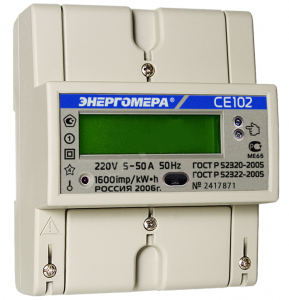 Счетчик ЭНЕРГОМЕРА CE102 R5.1 145-J 230В; 5-60А; кт 1,0; оптопорт; ТМ-вых.; мн.тар.; универс
