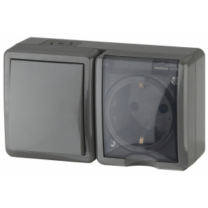ЭРА Эксперт Блок выключатель 1 кл. + розетка с/з с крышкой IP54 серый