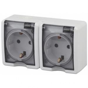 ЭРА Эксперт розетка 2-я с/з с крышкой IP54 белая