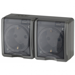ЭРА Эксперт розетка 2-я с/з с крышкой IP54 серая