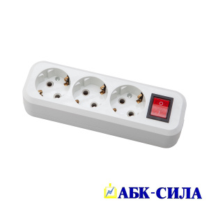 АБК-СИЛА Колодка розеточная 3 гнезда с з/к и выключателем 16А 220В белая