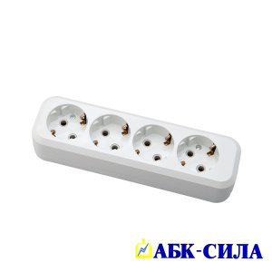 АБК-СИЛА Колодка розеточная 4 гнезда с з/к 16А 220В белая
