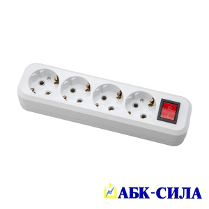 АБК-СИЛА Колодка розеточная 4 гнезда с з/к и выключателем 16А 220В белая