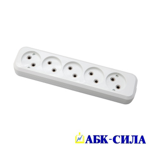 АБК-СИЛА Колодка розеточная 5 гнезда без з/к 16А 220В белая
