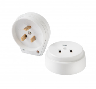 АБК-СИЛА Разъём РШ-ВШ 32А 220В 2P+PE открытый угловой пластик белый