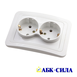 АБК-СИЛА Розетка двухместная с з/к 16А 220В "РИГЕЛЬ" белая