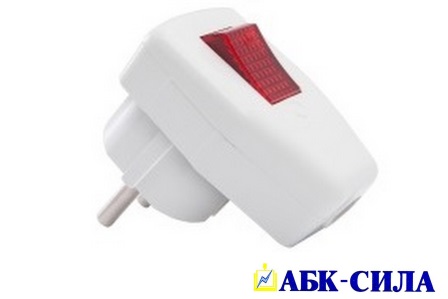 АБК-СИЛА Вилка разборная угловая с з/к с выключателем 16А 220В белая