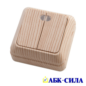 АБК-СИЛА Выключатель 2-кл с подсветкой 10А "АЛЬТАИР" сосна