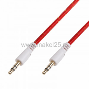 Аудиокабель AUX 3.5 мм в тканевой оплетке 1 м красный REXANT